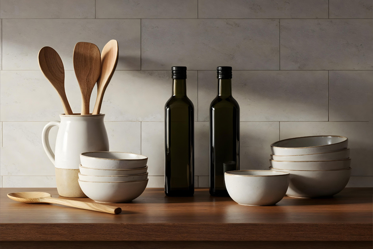 • Countertops: Marble, granite, quartz, concrete, wood, and composite materials.